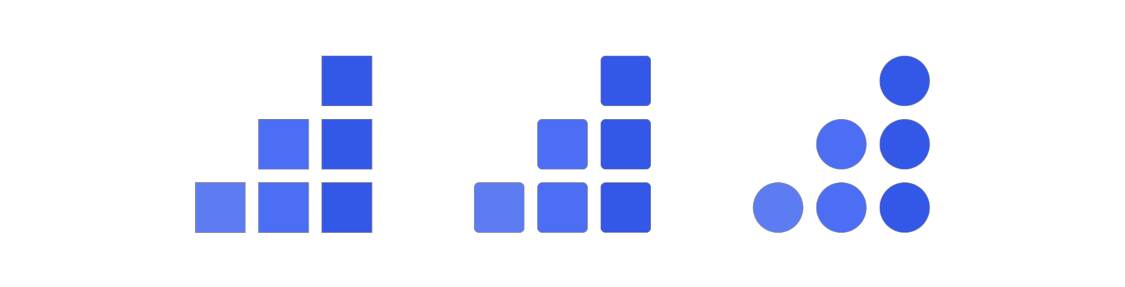 And then, adding the Metorik indigo I so very love: #4C6EF5. But also playing with the border radius, giving it a slightly rounded corner and also an infinitely rounded corner: