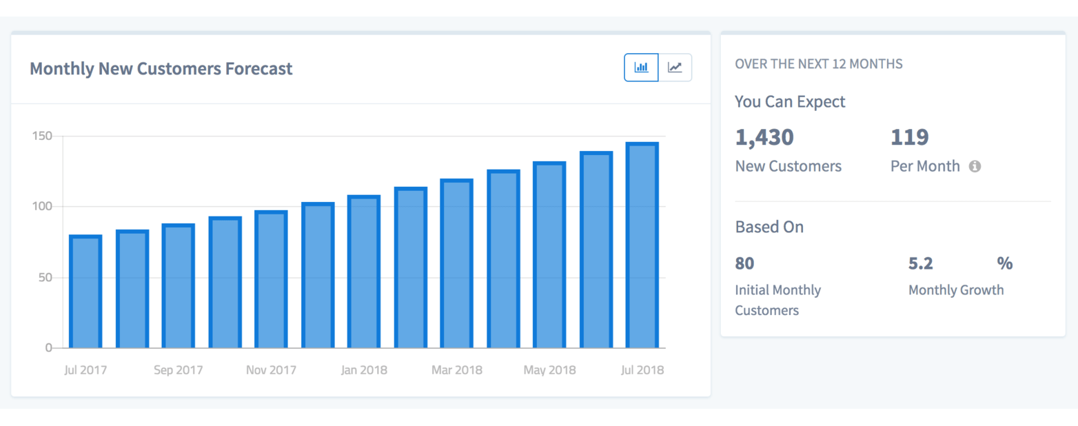 Of course, forecasting based on past growth isn't always perfect. You may want to try tweaking the growth rate to see different outcomes, so you can get an idea of both the 'worst case scenario' and the 'best case scenario'. Again, it's quite easy to do that in Metorik:
