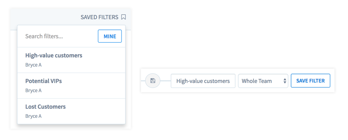 Some of the magic here is that the filters aren't just used once and forgotten. You can save a filter in one click so it's always available, and optionally share it with your whole team.