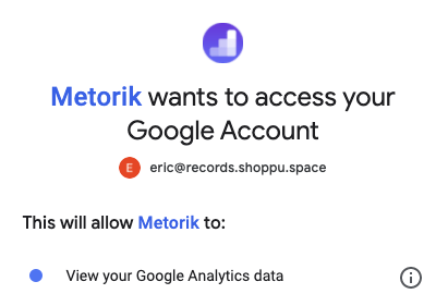 After getting Metorik setup for your store, you can quickly and easily link your Google Analytics account; this lets Metorik know where it should be getting the data from: