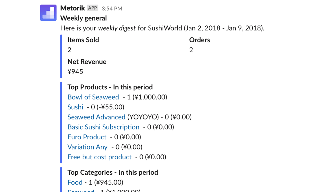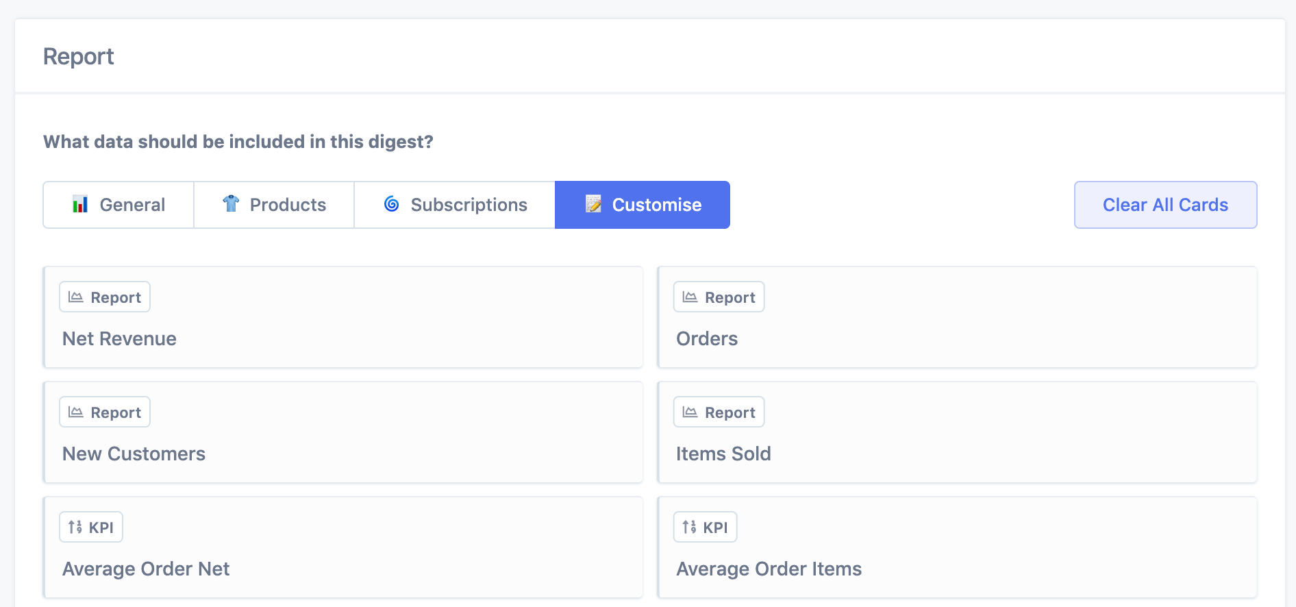 Metorik Digests allow you to create a completely customised WooCommerce sales report email with any metric or KPI.