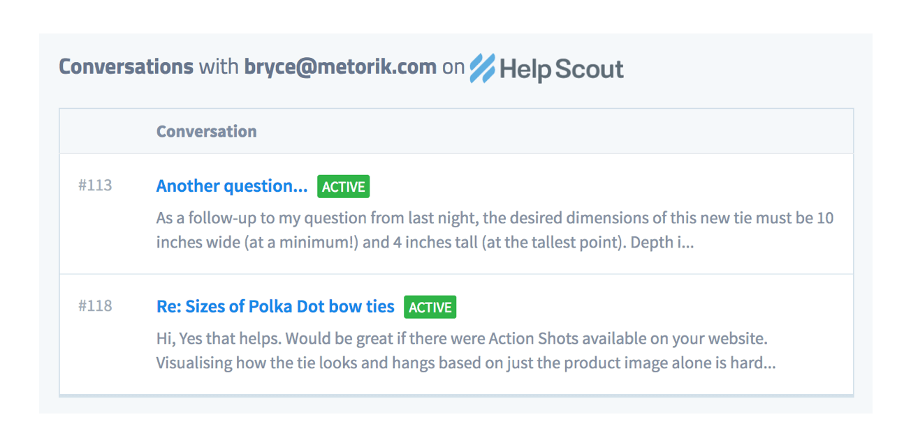 The second part of the Help Scout integration brings Help Scout data into Metorik itself.