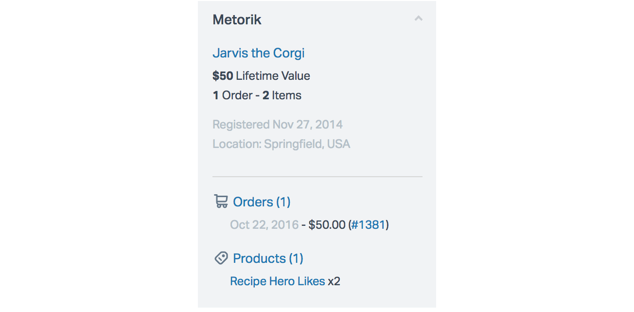 When you are replying to a customer’s support ticket in Help Scout, useful data about that user from Metorik will be displayed including their past orders and lifetime-value.
