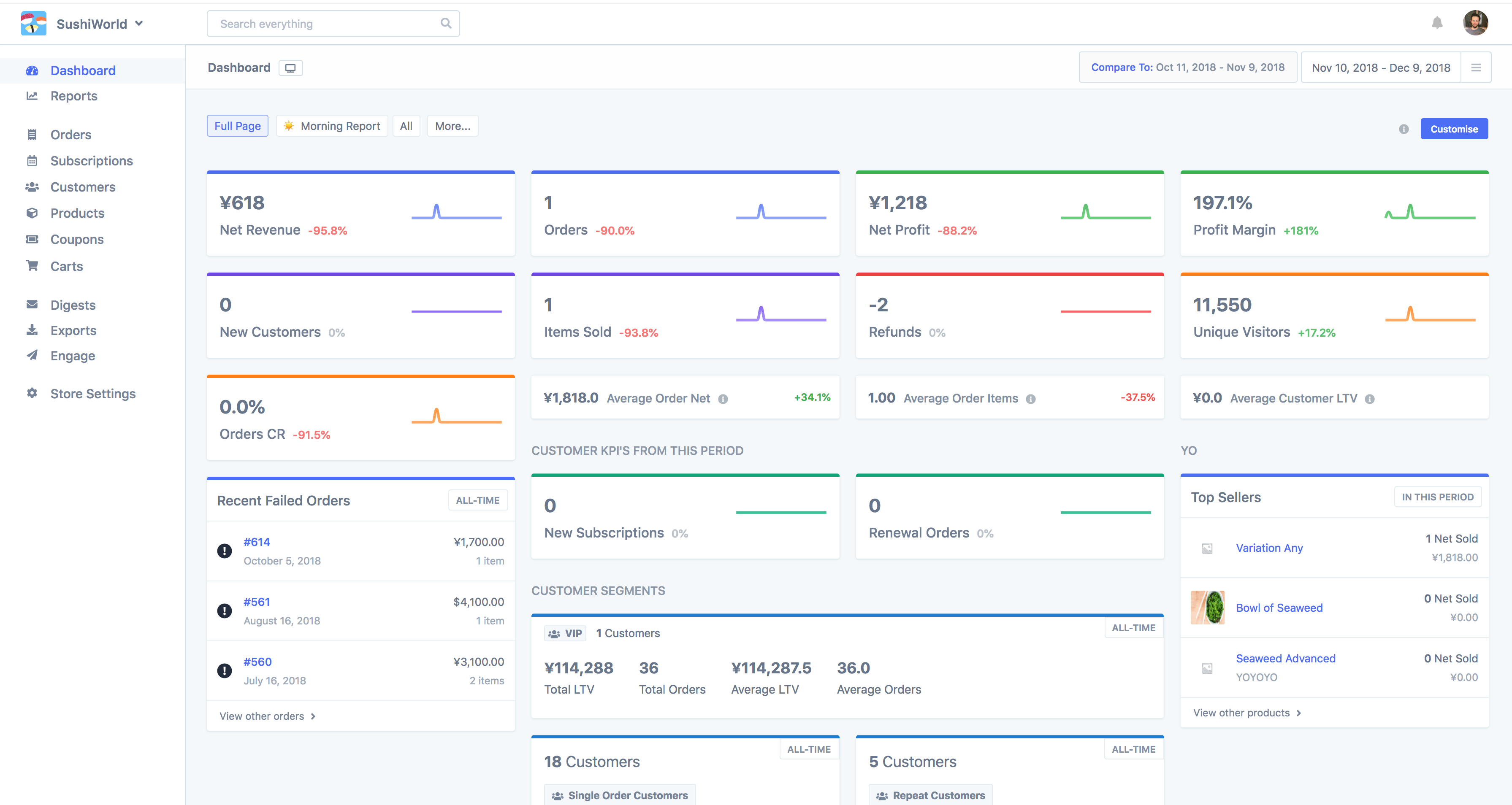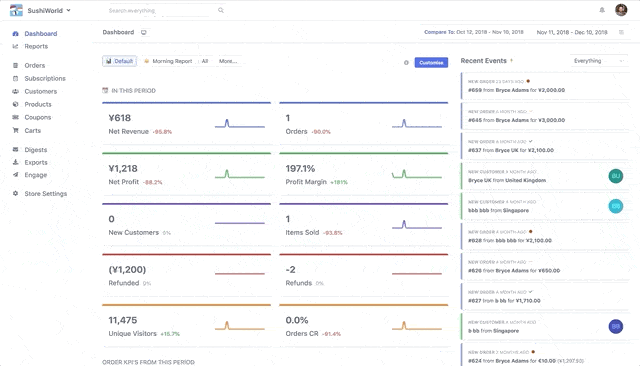 More recently, custom dashboards have been improved and extended, with more cards like 'segment lists' (eg. show a list of low stock products on the dashboard or high value customers that haven't ordered recently), UX improvements making them easier to customise, and even the ability to hide the 'recent events' area, giving you more room to customise.
