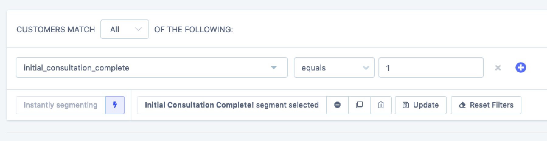 To elaborate on this, Marcy has a segment called ‘Initial Consult Complete’ which uses a custom meta field keep track of whether a customer has had their initial chat with a Dosage Specialist.